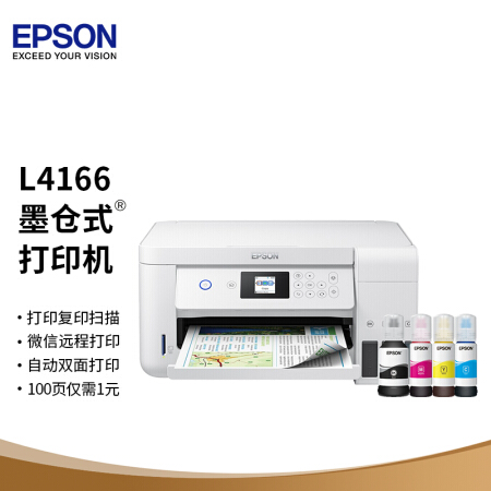 愛普生(EPSON)墨倉式品質(zhì)款L4166(優(yōu)雅白) 微信打印/無線連接 打印復印掃描一體機